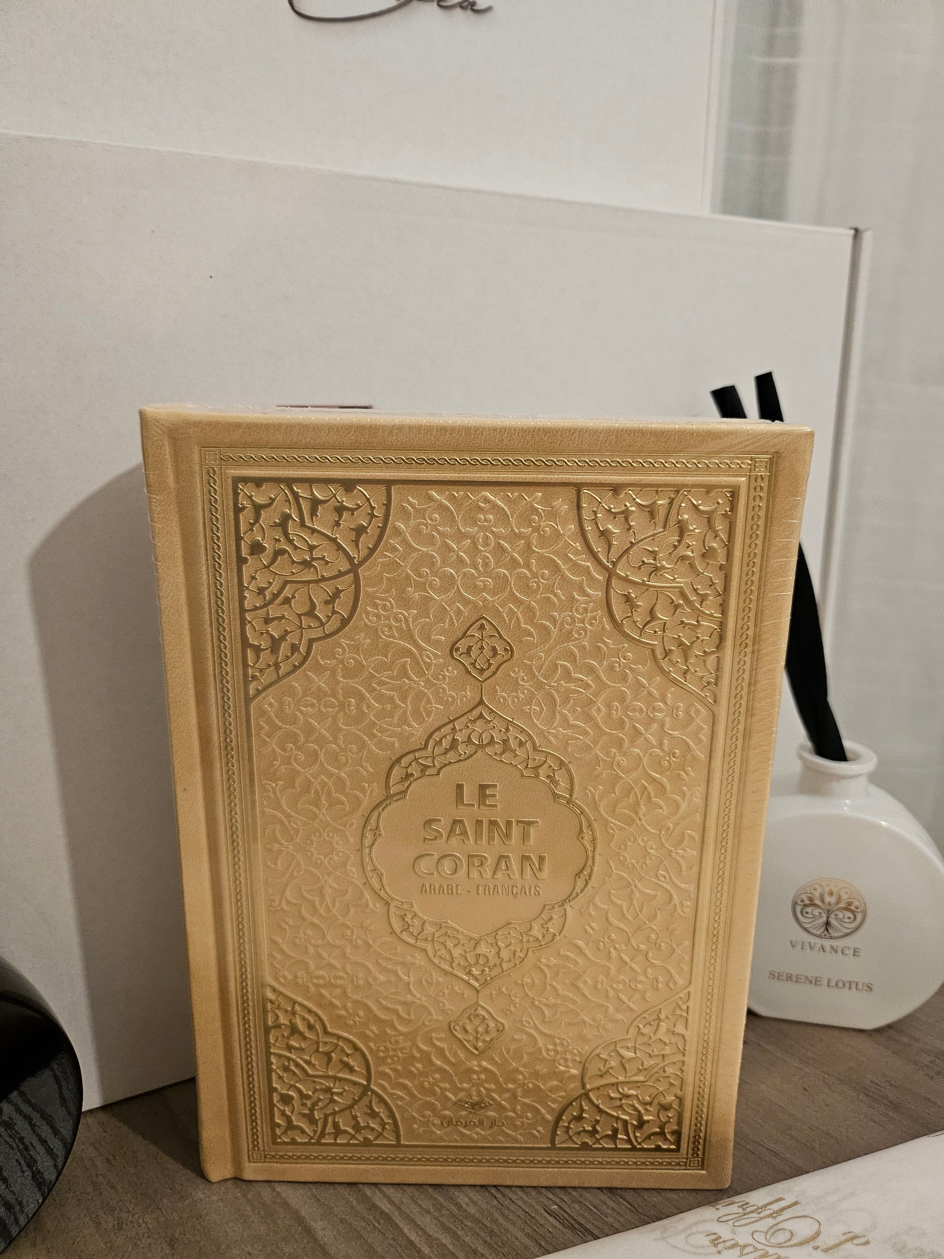 Très joli Coran Arabe/Français et ses bordures en dorées et son QR Code sur chaque page pour écouter la récitation en ligne.